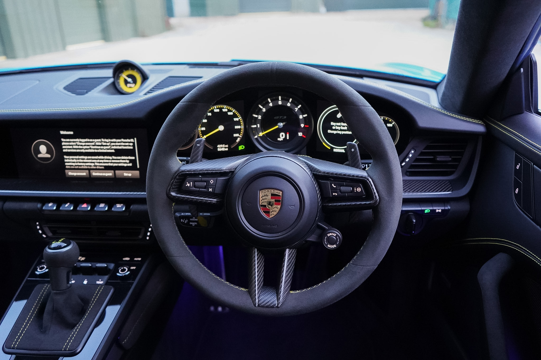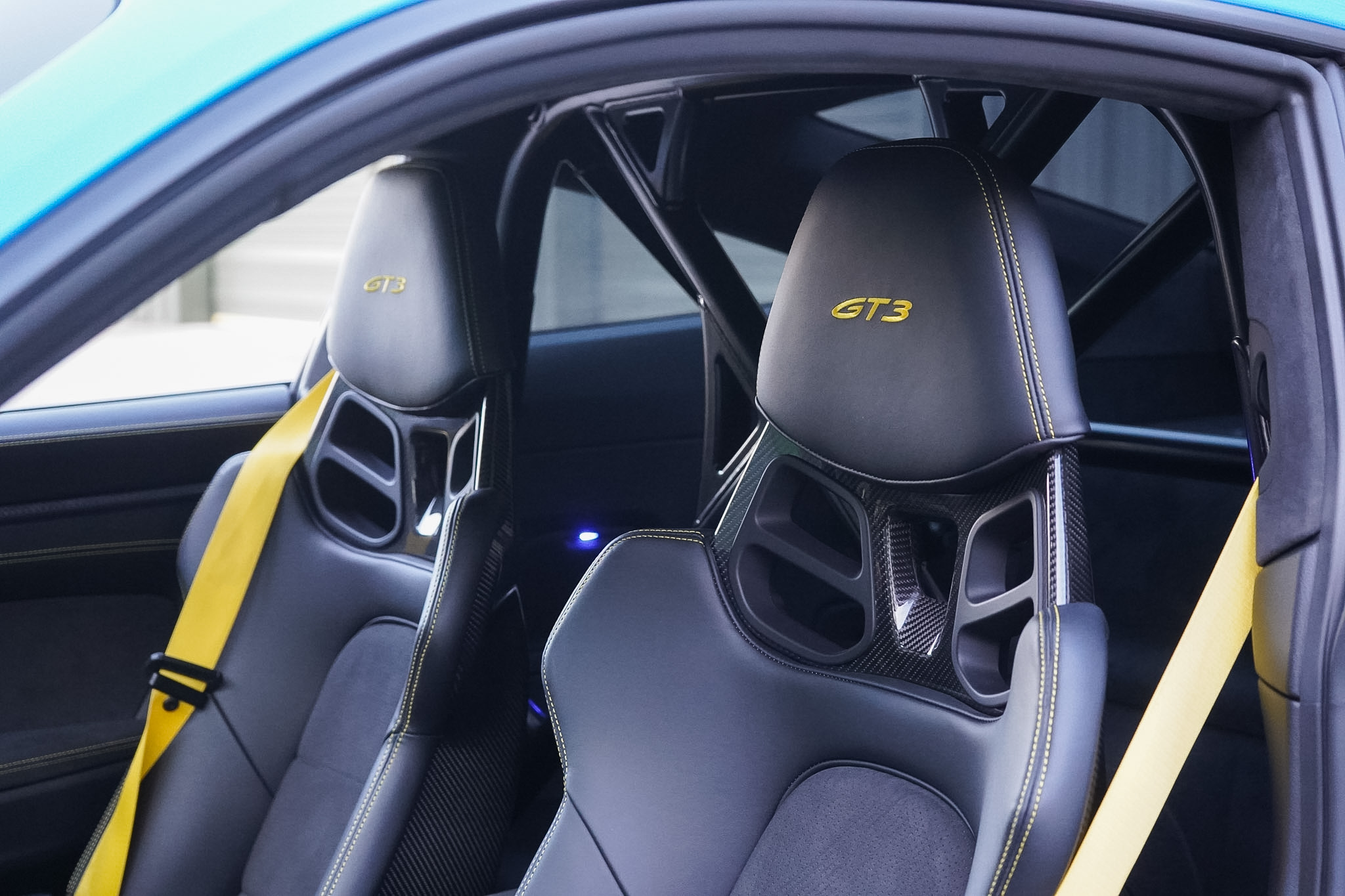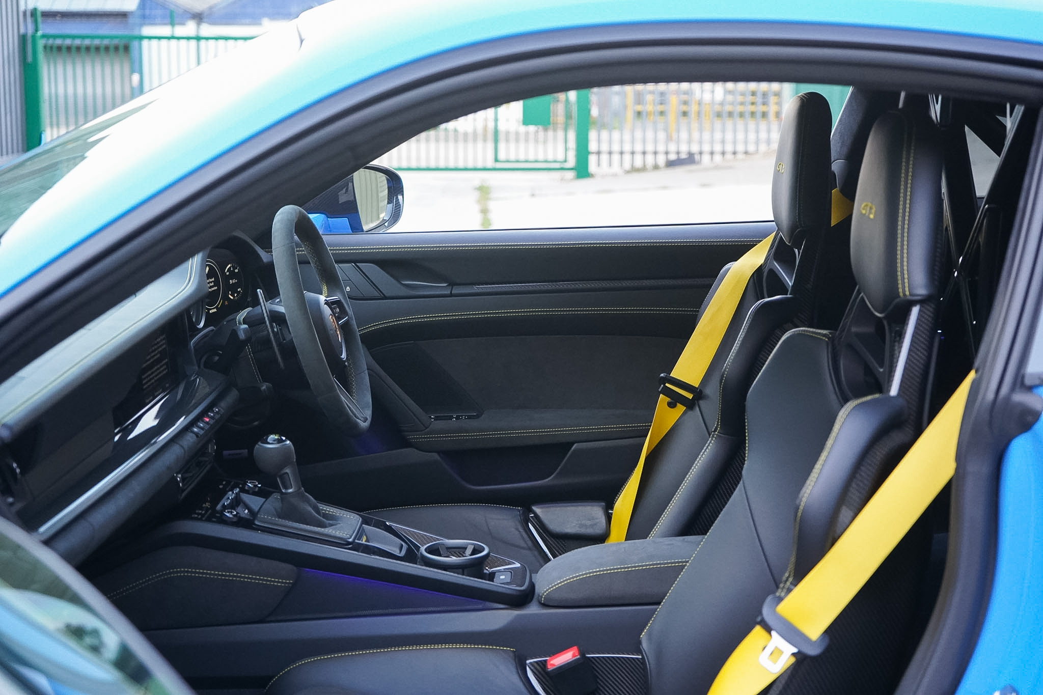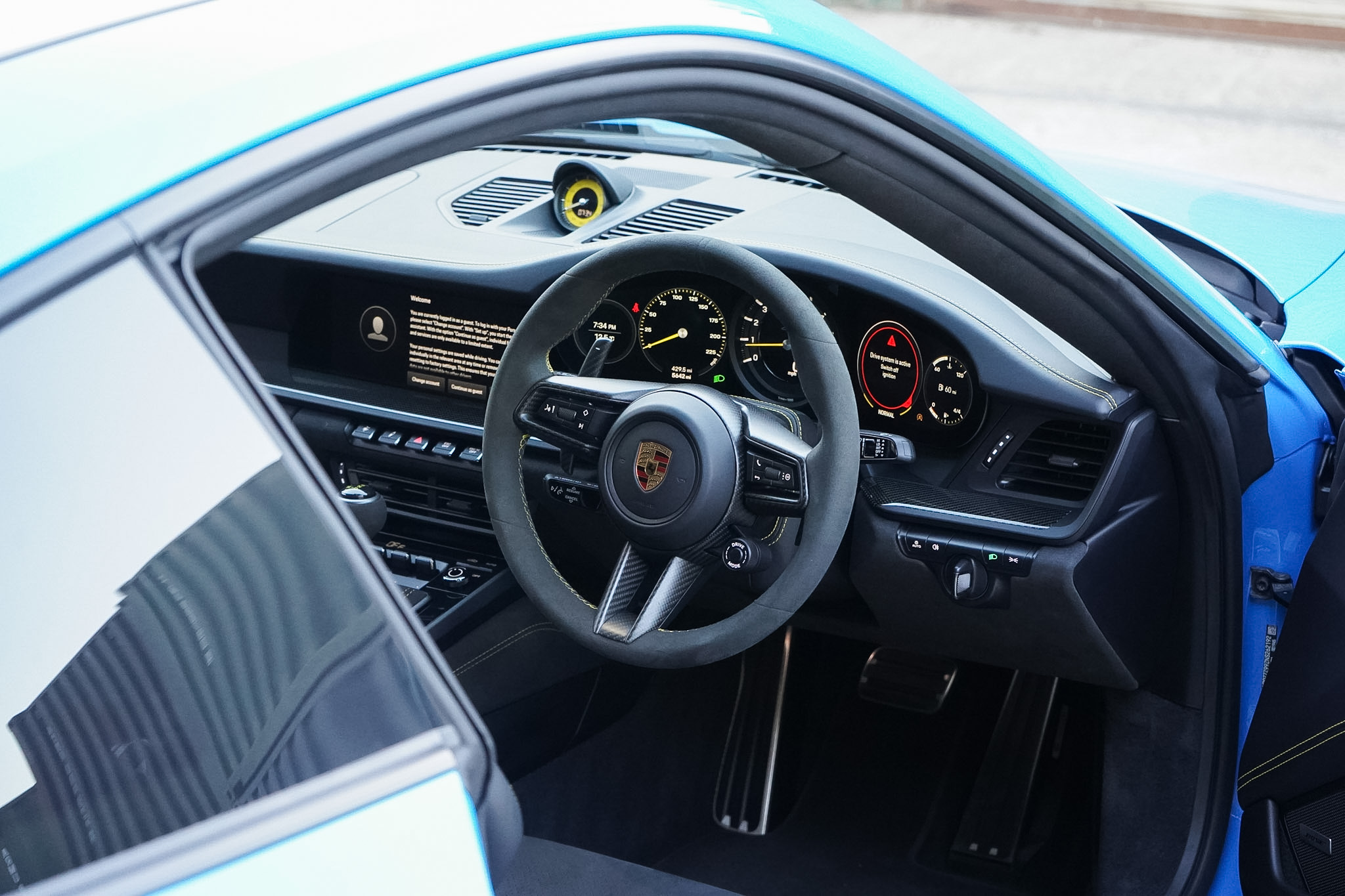 Finished in Launch Colour Shark Blue and specified with everything you'd realistically want from a driver-focused GT3: PCCB, Carbon Buckets, Carbon Roof, Front Axle Lift and Clubsport. It's not missing any of the key options people usually miss out on to stay under the 160-165K mark.