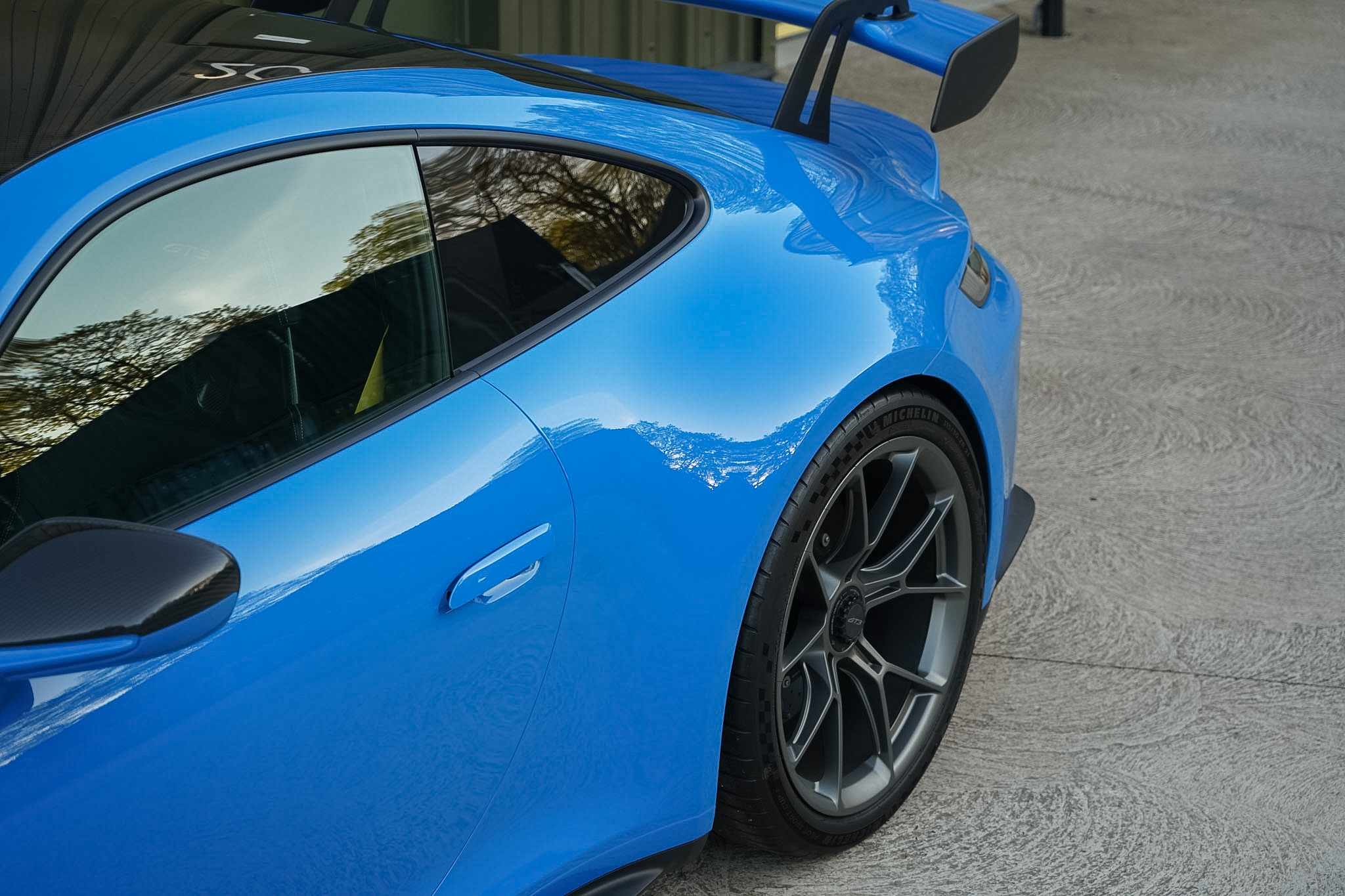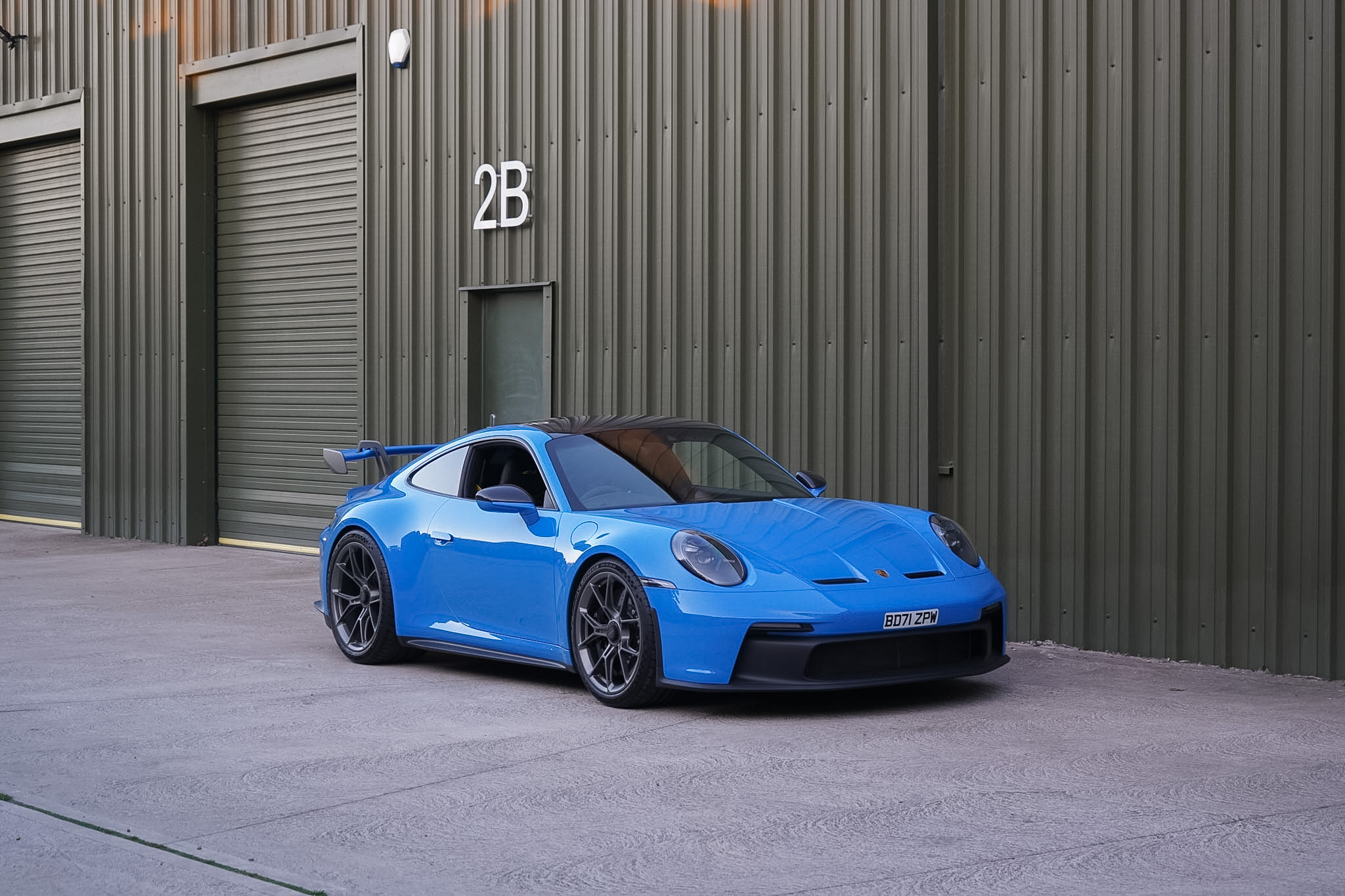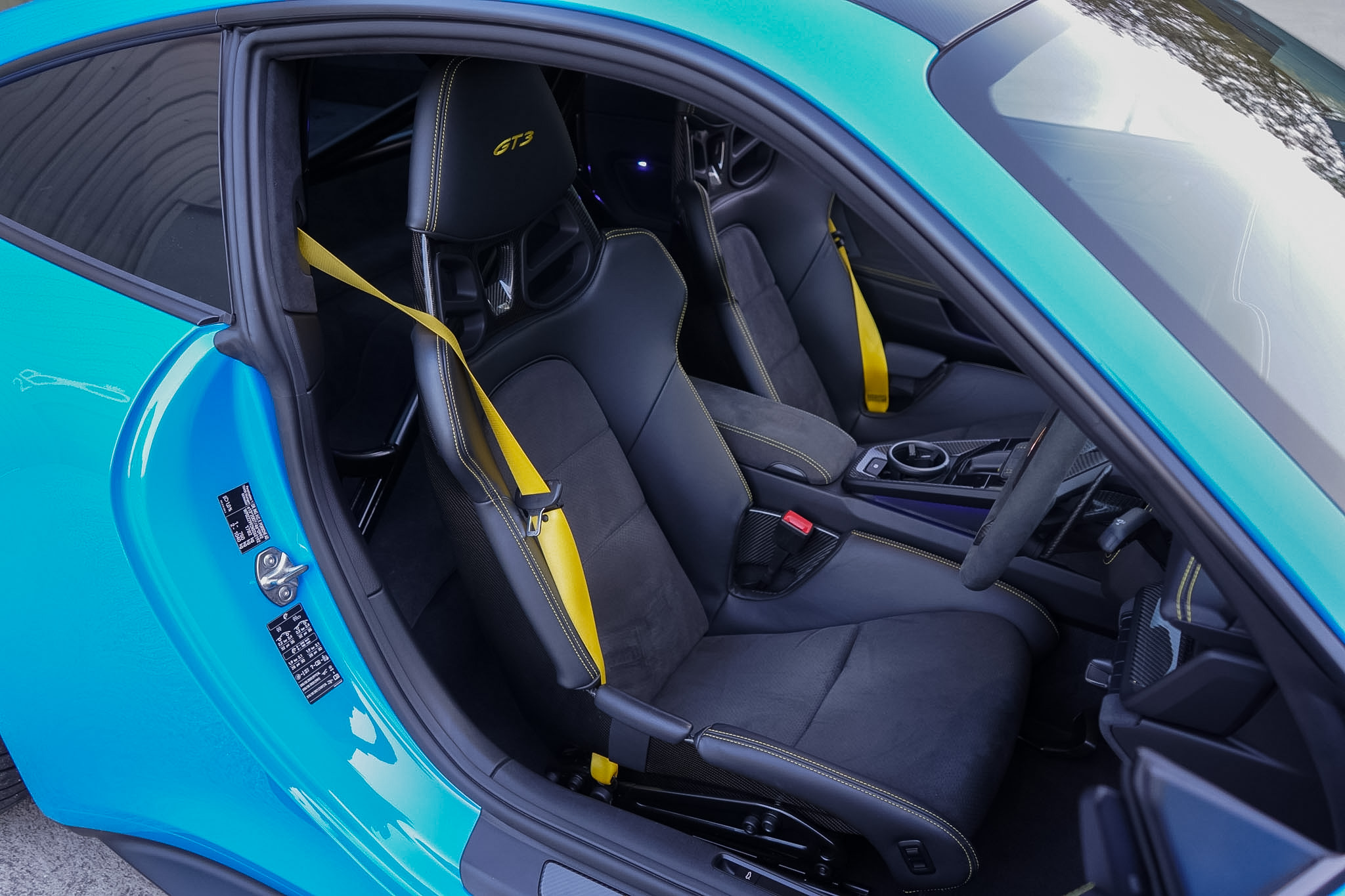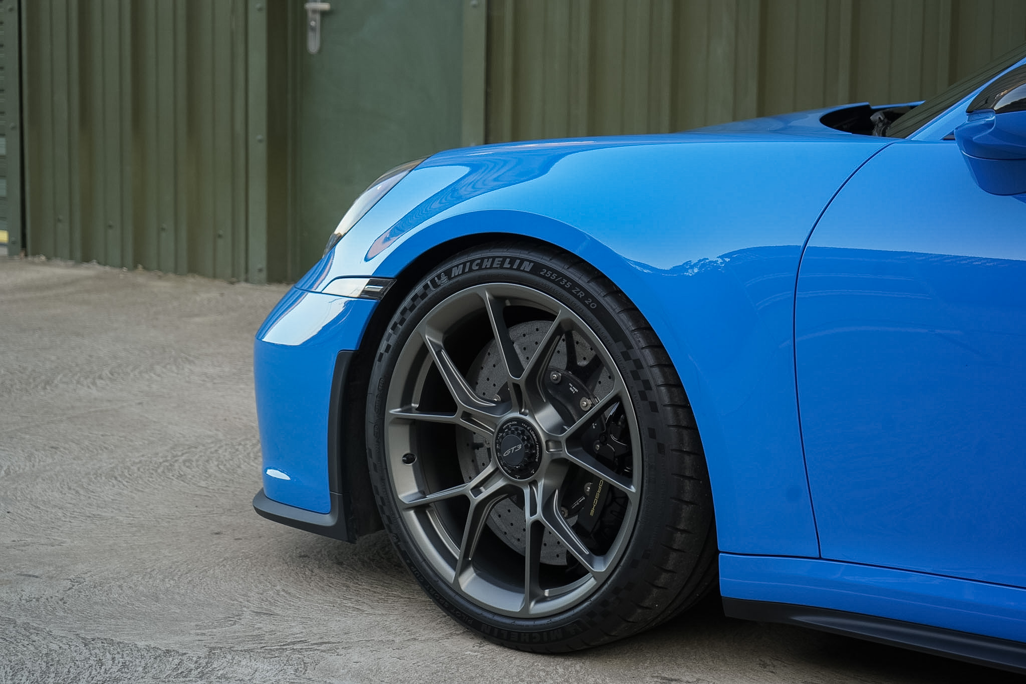 Finished in Launch Colour Shark Blue and specified with everything you'd realistically want from a driver-focused GT3: PCCB, Carbon Buckets, Carbon Roof, Front Axle Lift and Clubsport. It's not missing any of the key options people usually miss out on to stay under the 160-165K mark.