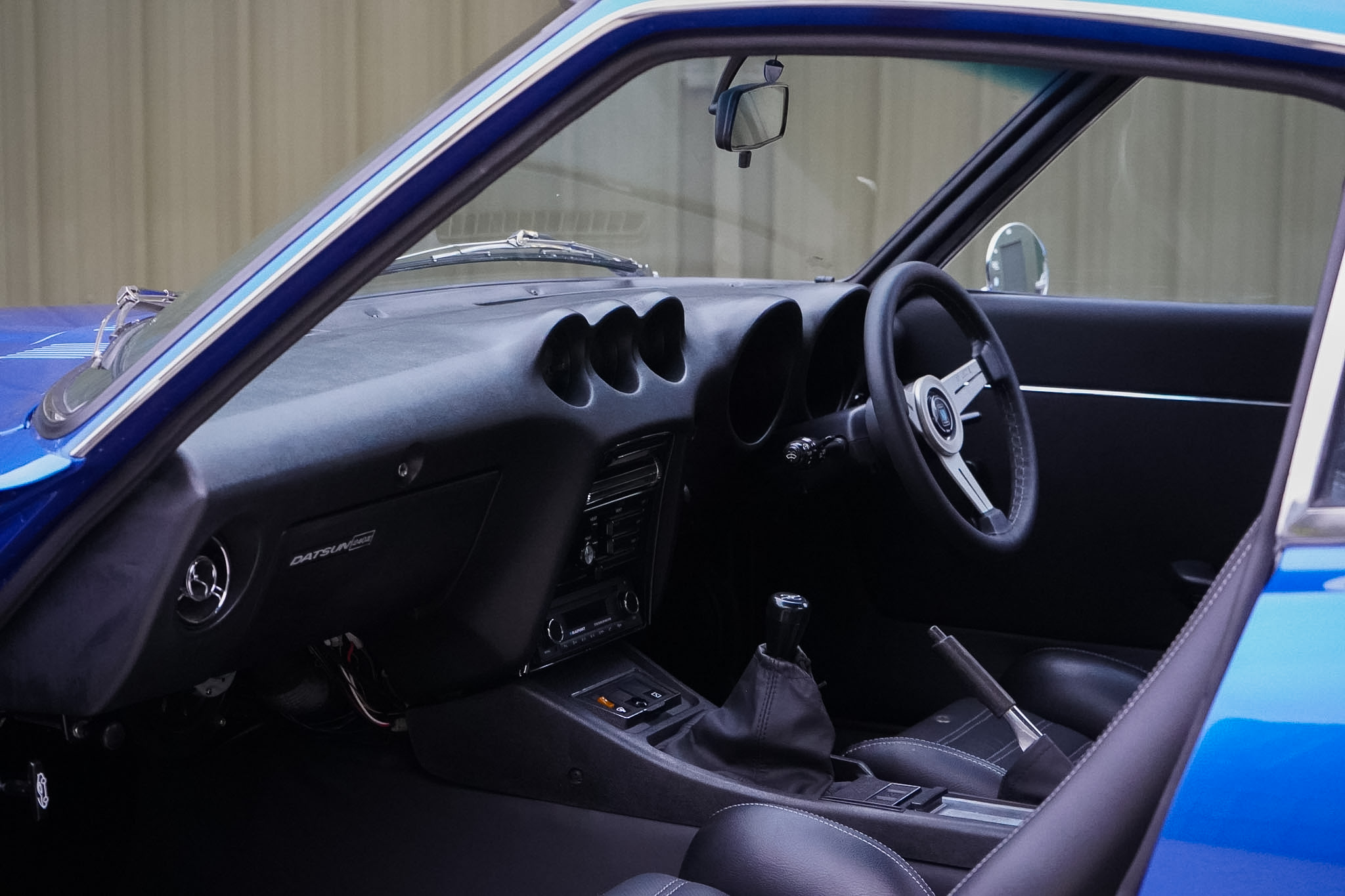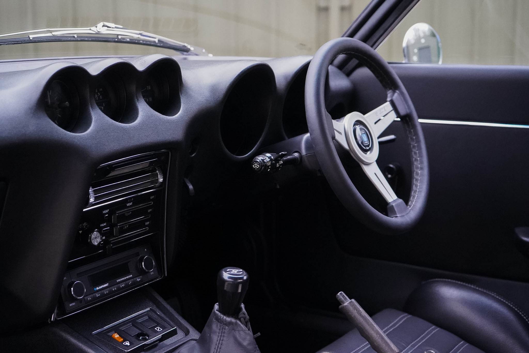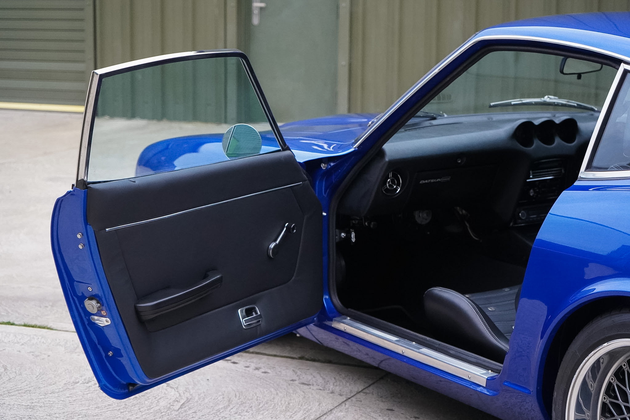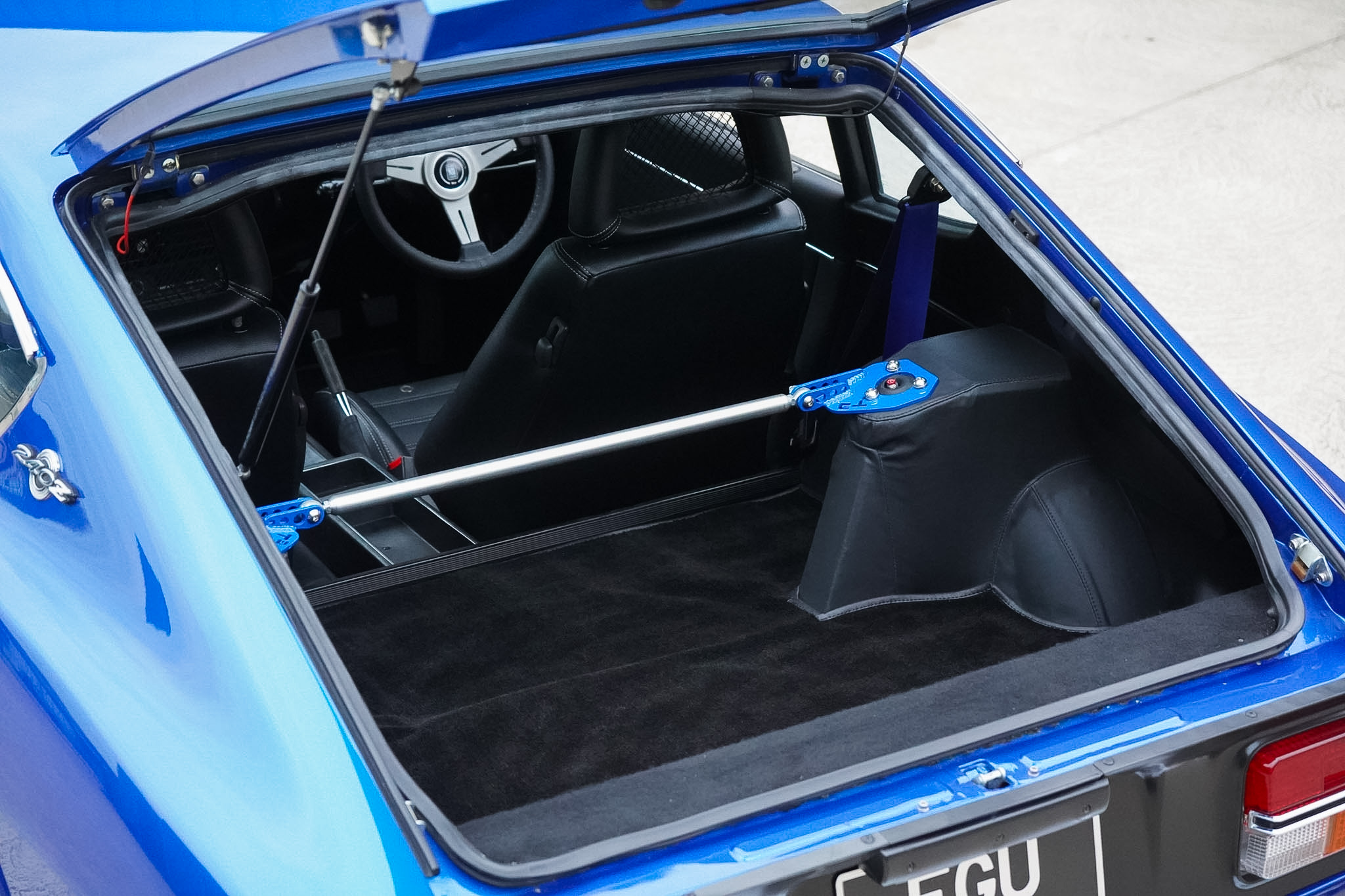 Changing hands in August 2022 as just a tastefully modified nut-and-bolt restoration, this final phase saw a 16 month build with over £20, 000 of expenditure at marque specialists ‘Fourway’s Engineering’, to reimagine and modernise this 240Z to a comfortable restomod status. Most notably fitted with electric power assisted steering, heated rear windscreen and a reimagined interior — installed with sound deadening and fully retrimmed in Caledonian Black Leather, the headlining was redone in vinyl before being fitted with Recaro seats, 3 point seat belts in body colour and a nardi steering wheel. The audio system was overhauled and wired for microphone and DAB with a Blaupunkt bluetooth head-unit, JBL BassPro Subwoofer and rear speaker boxes. The build was finalised with a 3 stage machine polish and Gtechniq 7 Year Ceramic Coating.