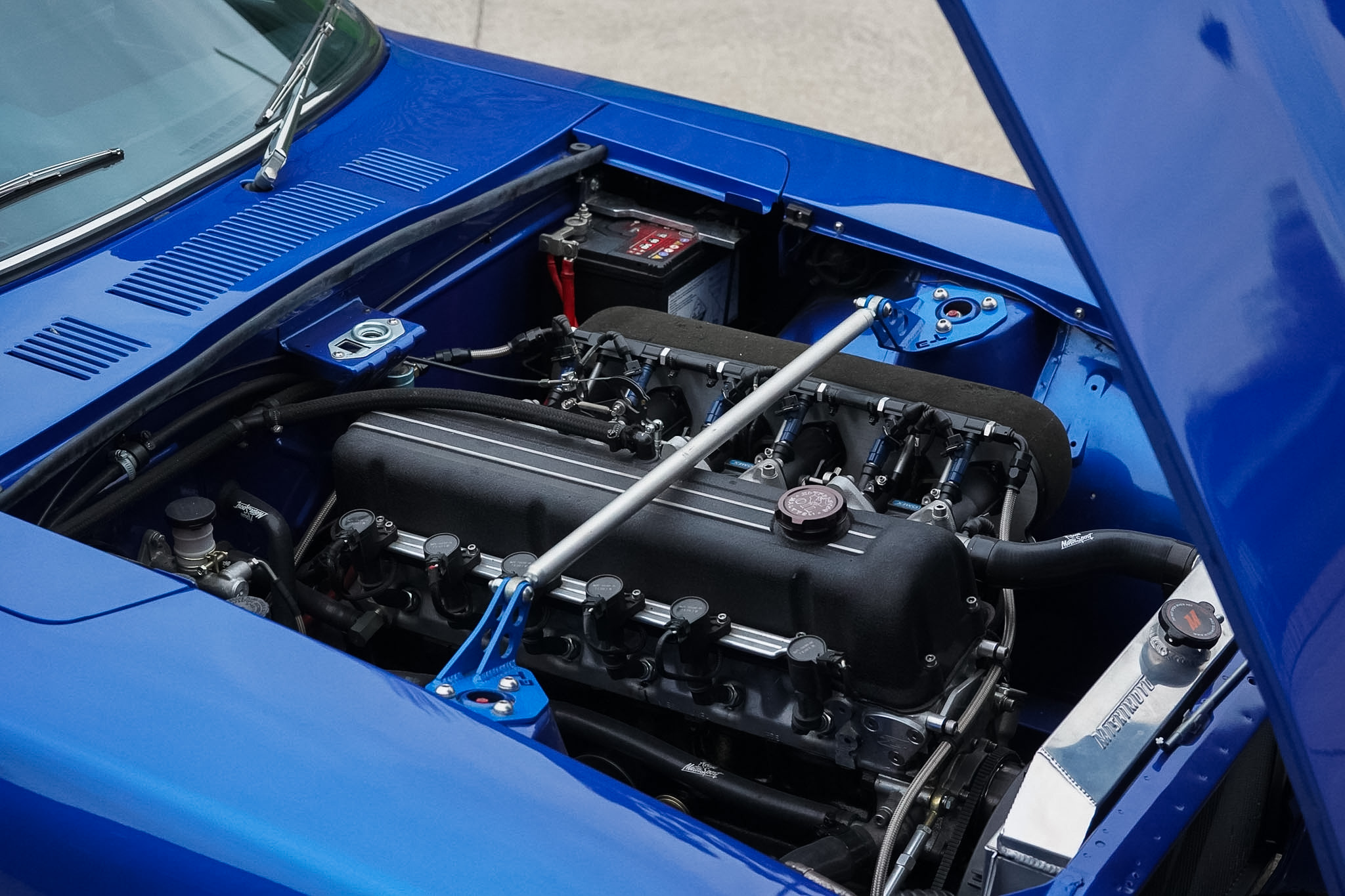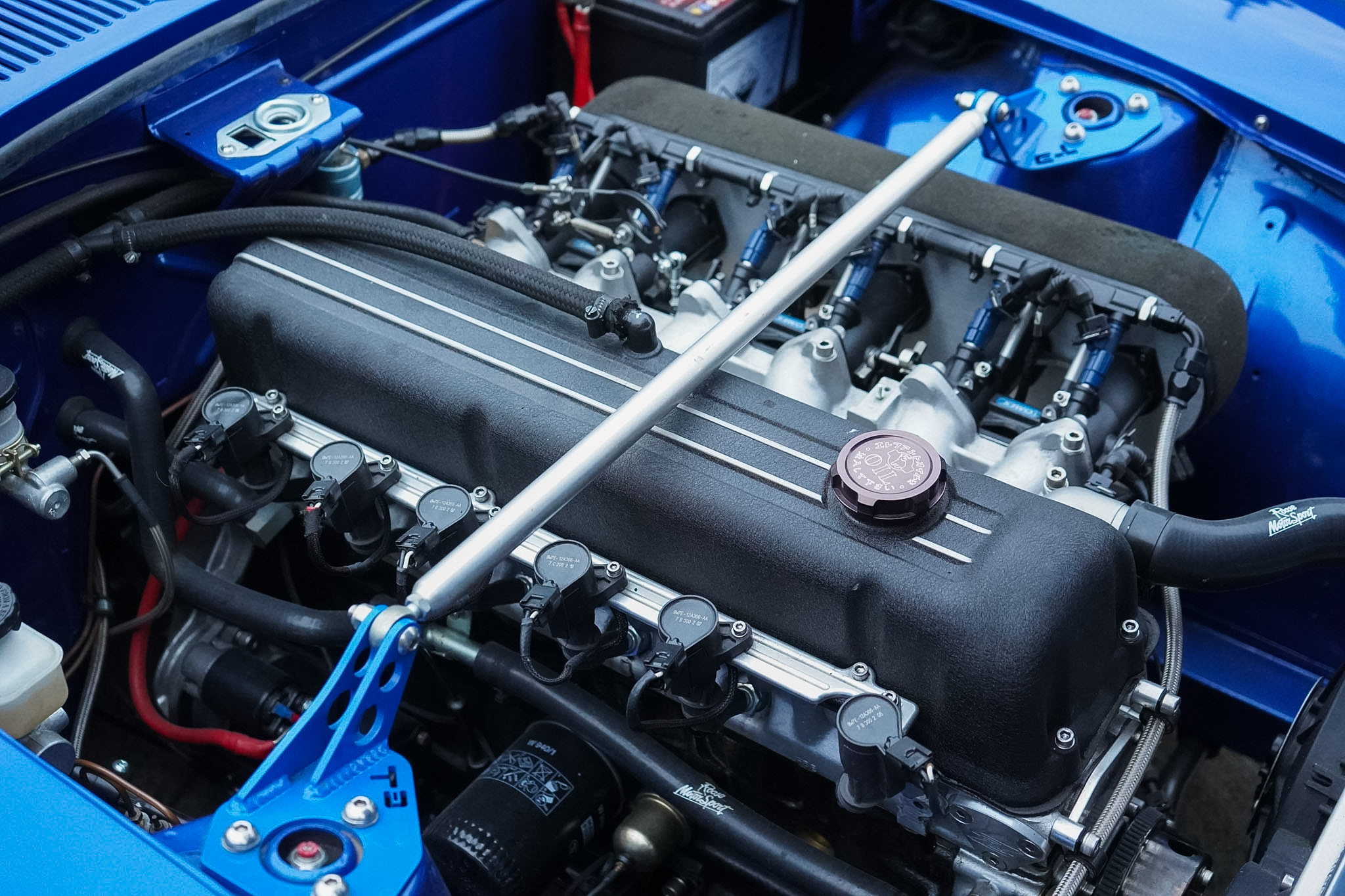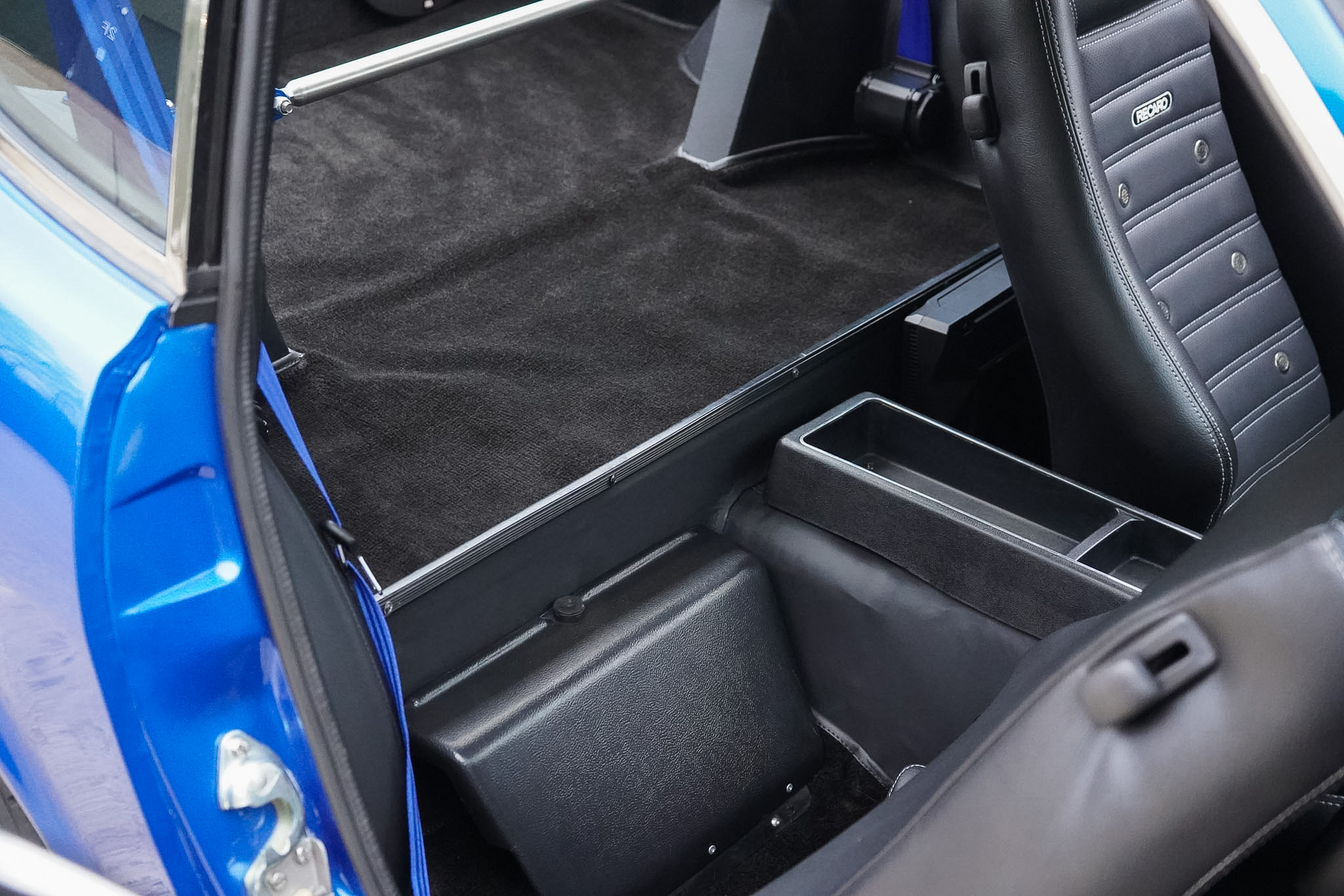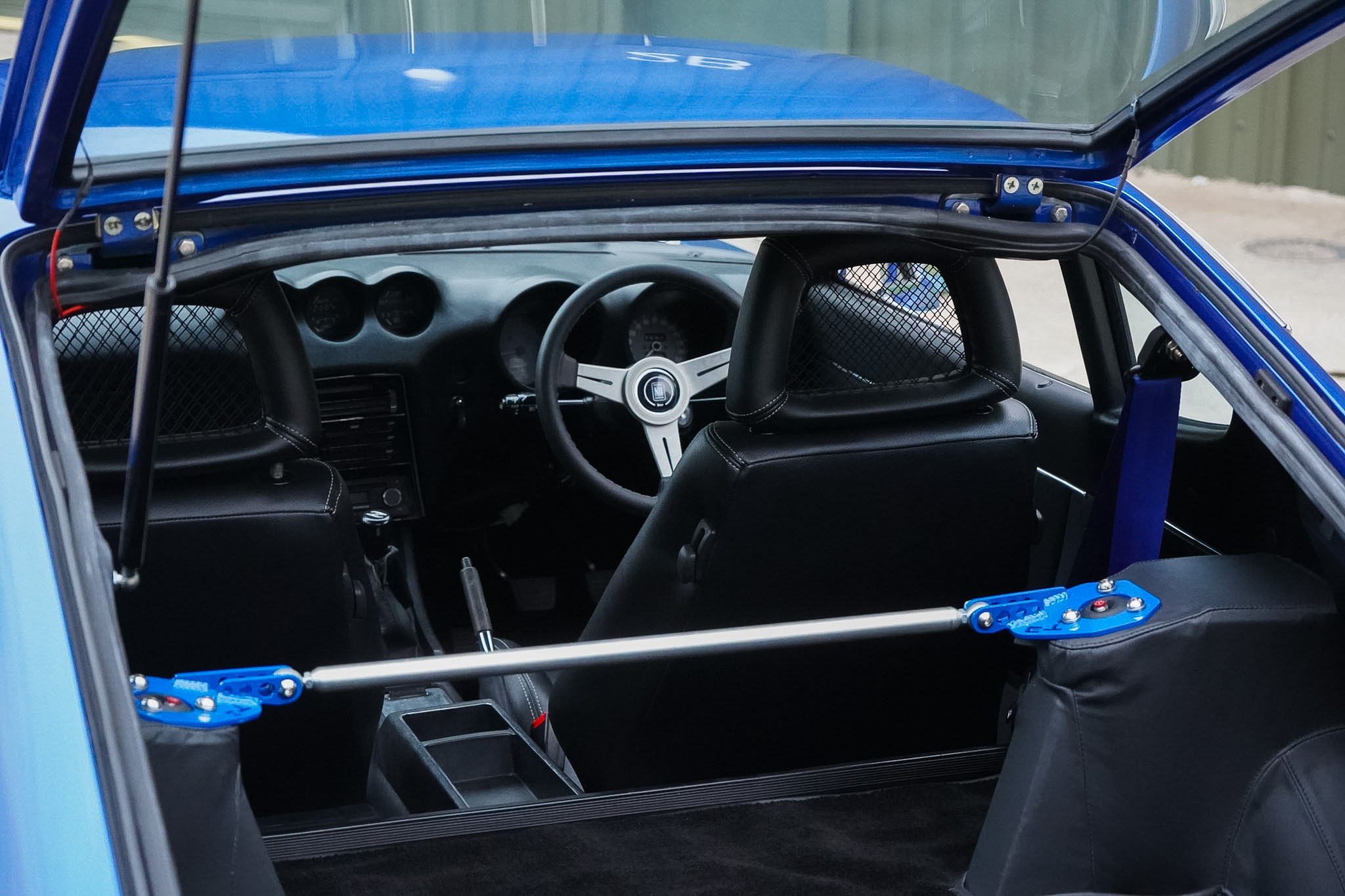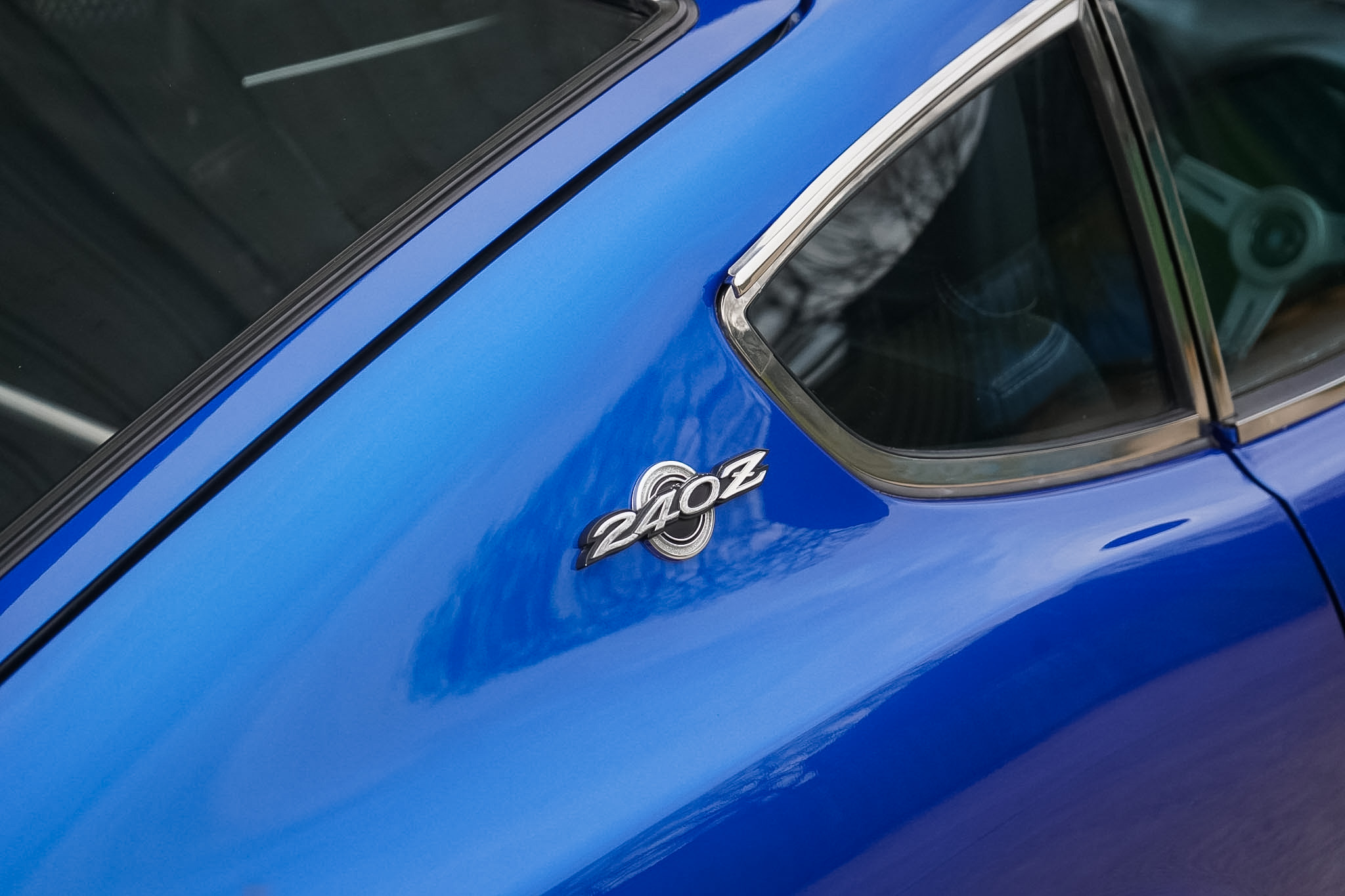 Changing hands in August 2022 as just a tastefully modified nut-and-bolt restoration, this final phase saw a 16 month build with over £20, 000 of expenditure at marque specialists ‘Fourway’s Engineering’, to reimagine and modernise this 240Z to a comfortable restomod status. Most notably fitted with electric power assisted steering, heated rear windscreen and a reimagined interior — installed with sound deadening and fully retrimmed in Caledonian Black Leather, the headlining was redone in vinyl before being fitted with Recaro seats, 3 point seat belts in body colour and a nardi steering wheel. The audio system was overhauled and wired for microphone and DAB with a Blaupunkt bluetooth head-unit, JBL BassPro Subwoofer and rear speaker boxes. The build was finalised with a 3 stage machine polish and Gtechniq 7 Year Ceramic Coating.